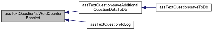 Here is the caller graph for this function:| assTextQuestion::setWordCounterEnabled | ( | bool | $word_counter_enabled | ) |