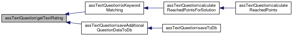 Here is the caller graph for this function:| assTextQuestion::getTextRating | ( | ) |