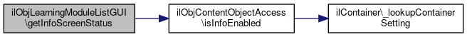 Here is the call graph for this function:| ilObjLearningModuleListGUI::getInfoScreenStatus | ( | ) |
