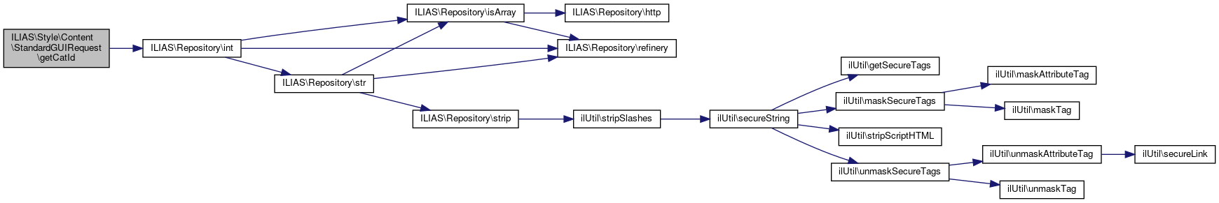 Here is the call graph for this function:| ILIAS\Style\Content\StandardGUIRequest::getCatId | ( | ) |