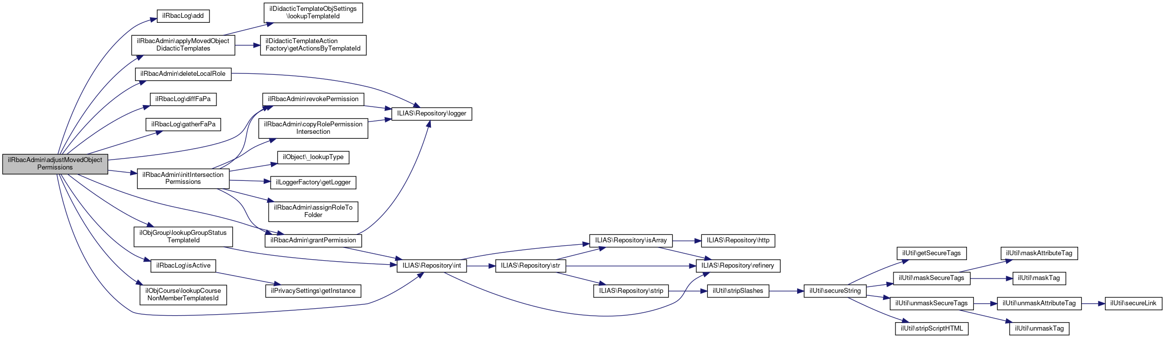 References $DIC, $log, ilRbacLog\add(), applyMovedObjectDidacticTemplates(), deleteLocalRole(), ilRbacLog\diffFaPa(), ilRbacLog\gatherFaPa(), grantPermission(), initIntersectionPermissions(), ILIAS\Repository\int(), ilRbacLog\isActive(), ilObjCourse\lookupCourseNonMemberTemplatesId(), ilObjGroup\lookupGroupStatusTemplateId(), ilRbacLog\MOVE_OBJECT, revokePermission(), and ROLE_FOLDER_ID.