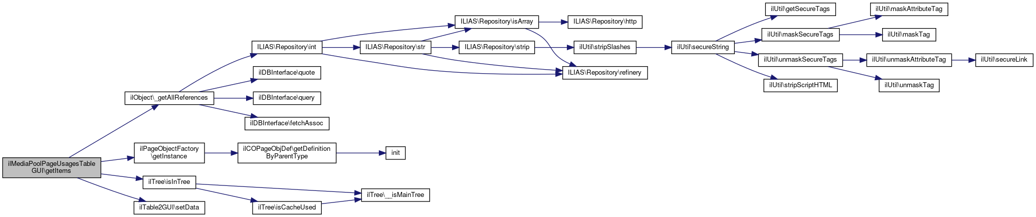 Here is the caller graph for this function:| ilMediaPoolPageUsagesTableGUI::getItems | ( | ) |