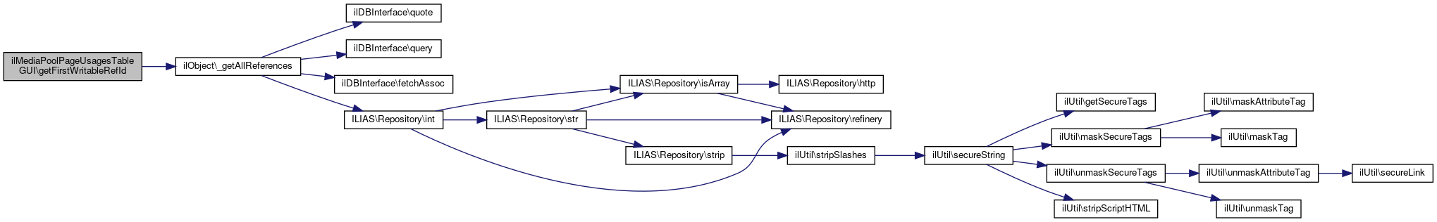 Here is the call graph for this function:| ilMediaPoolPageUsagesTableGUI::getFirstWritableRefId | ( | int | $a_obj_id | ) |