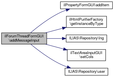 References ilPropertyFormGUI\addItem(), ilHtmlPurifierFactory\getInstanceByType(), ILIAS\Repository\lng(), ilTextAreaInputGUI\setCols(), and ILIAS\Repository\user().