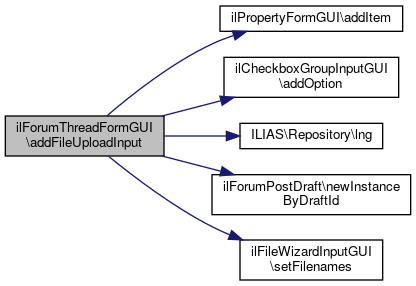 References ilPropertyFormGUI\addItem(), ilCheckboxGroupInputGUI\addOption(), ILIAS\Repository\lng(), ilForumPostDraft\newInstanceByDraftId(), and ilFileWizardInputGUI\setFilenames().