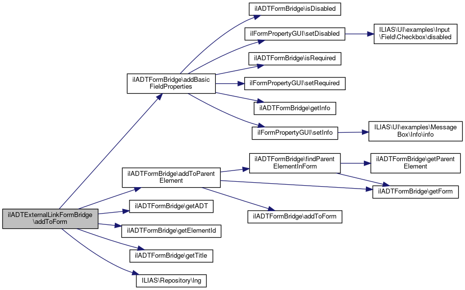 Here is the call graph for this function:| ilADTExternalLinkFormBridge::addToForm | ( | ) |