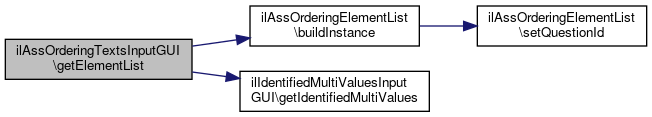 Here is the call graph for this function:| ilAssOrderingTextsInputGUI::getElementList | ( | $questionId | ) |