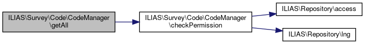 Here is the call graph for this function:| ILIAS\Survey\Code\CodeManager::getAll | ( | ) |