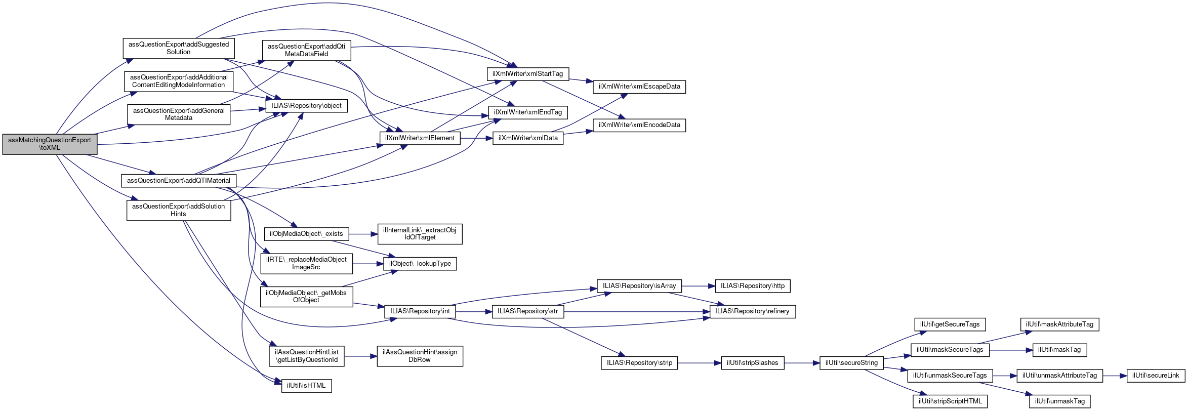 Returns a QTI xml representation of the question Returns a QTI xml representation of the question and sets the internal domxml variable with the DOM XML representation of the QTI xml representation.