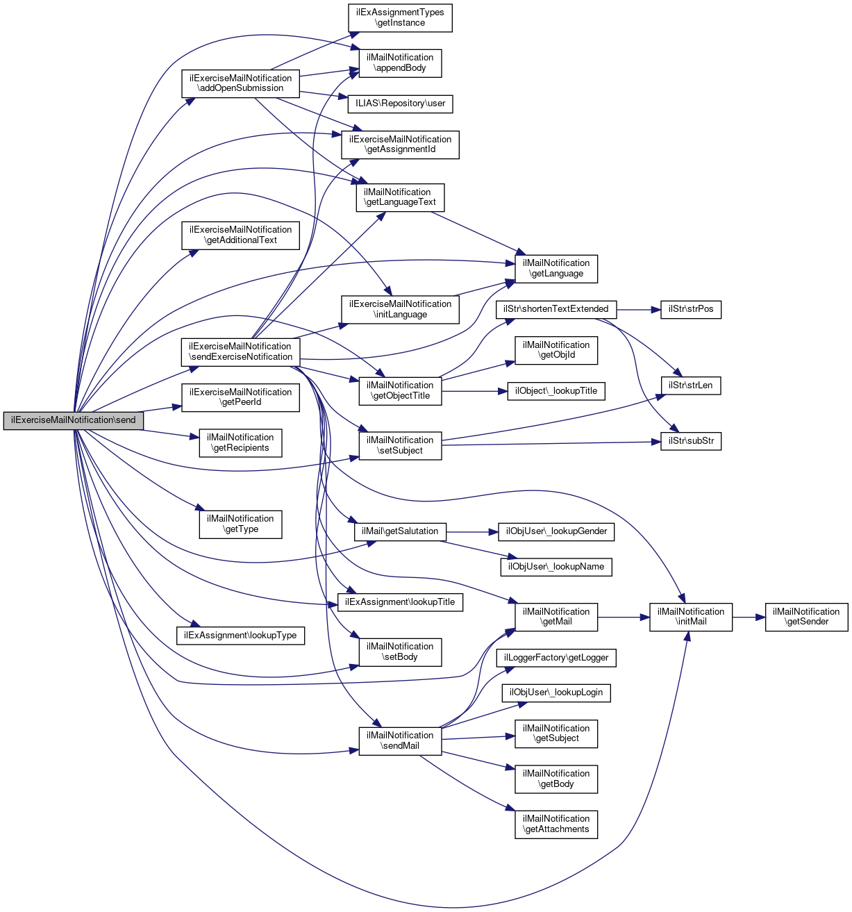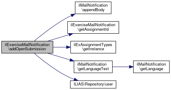 References $permanent_link, $user, addOpenSubmission(), ilMailNotification\appendBody(), getAdditionalText(), getAssignmentId(), ilMailNotification\getLanguage(), ilMailNotification\getLanguageText(), ilMailNotification\getMail(), ilMailNotification\getObjectTitle(), getPeerId(), ilMailNotification\getRecipients(), ilMail\getSalutation(), ilMailNotification\getType(), initLanguage(), ilMailNotification\initMail(), ilExAssignment\lookupTitle(), ilExAssignment\lookupType(), sendExerciseNotification(), ilMailNotification\sendMail(), ilMailNotification\setBody(), ilMailNotification\setSubject(), and ilExAssignment\TYPE_UPLOAD.