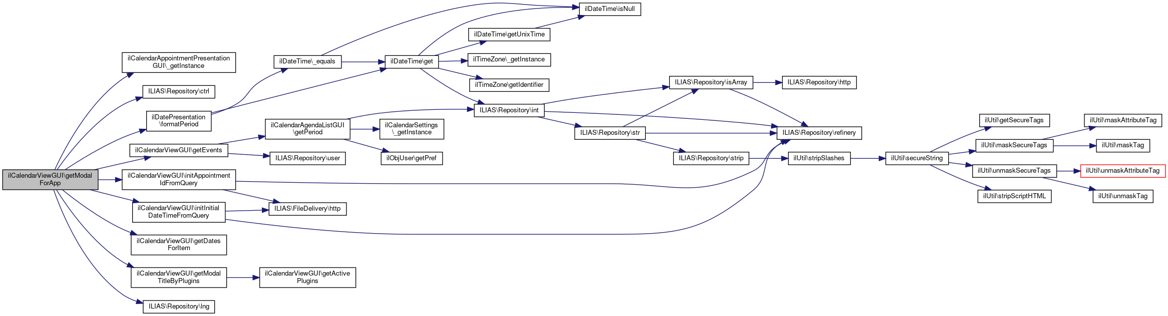 References ilCalendarAppointmentPresentationGUI\_getInstance(), ILIAS\Repository\ctrl(), exit, ilDatePresentation\formatPeriod(), getDatesForItem(), getEvents(), getModalTitleByPlugins(), initAppointmentIdFromQuery(), initInitialDateTimeFromQuery(), and ILIAS\Repository\lng().