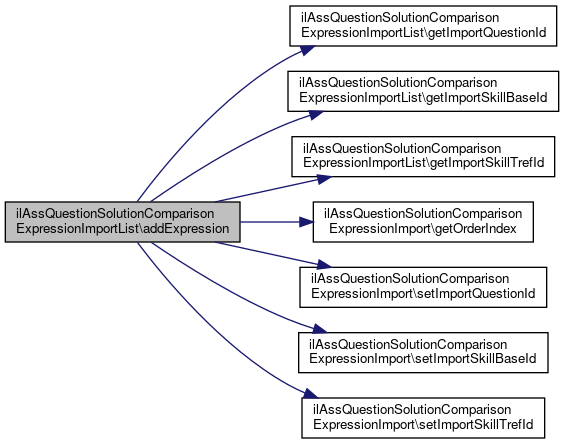 References getImportQuestionId(), getImportSkillBaseId(), getImportSkillTrefId(), ilAssQuestionSolutionComparisonExpressionImport\getOrderIndex(), ilAssQuestionSolutionComparisonExpressionImport\setImportQuestionId(), ilAssQuestionSolutionComparisonExpressionImport\setImportSkillBaseId(), and ilAssQuestionSolutionComparisonExpressionImport\setImportSkillTrefId().