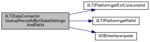 Here is the call graph for this function:| ilLTIDataConnector::lookupRecordIdByGlobalSettingsAndRefId | ( | ilLTIPlatform | $platform | ) |