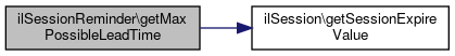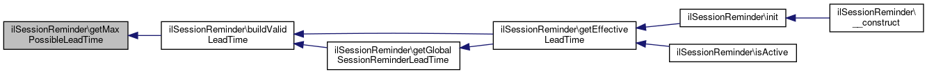 Here is the caller graph for this function:| ilSessionReminder::getMaxPossibleLeadTime | ( | ) |