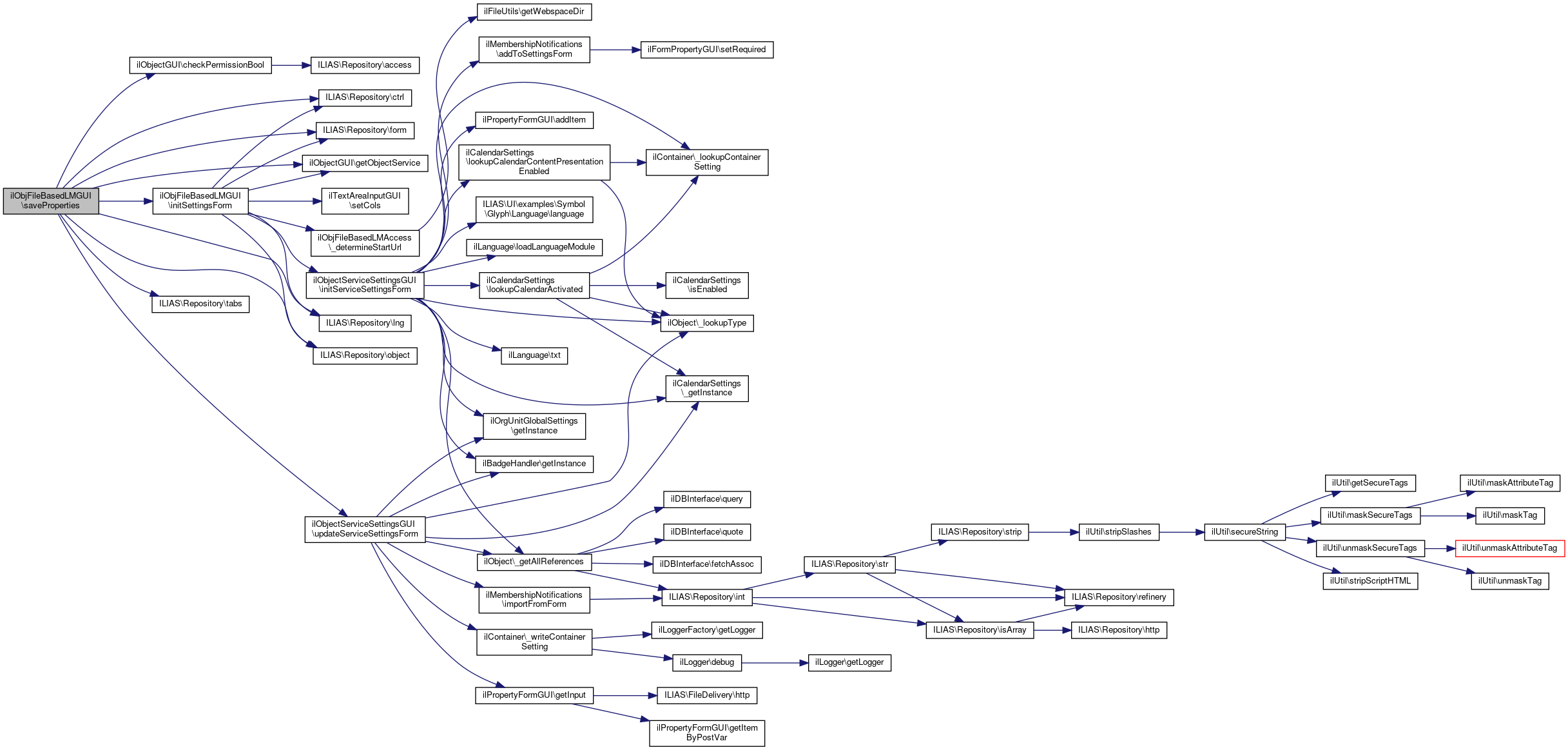 Here is the call graph for this function:| ilObjFileBasedLMGUI::saveProperties | ( | ) |