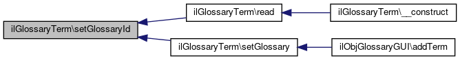 Here is the caller graph for this function:| ilGlossaryTerm::setGlossaryId | ( | int | $a_glo_id | ) |