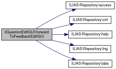 Here is the call graph for this function:| ilQuestionEditGUI::forwardToFeedbackEditGUI | ( | assQuestionGUI | $question_gui | ) |