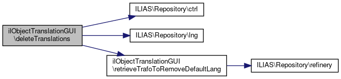 Here is the call graph for this function:| ilObjectTranslationGUI::deleteTranslations | ( | ) |