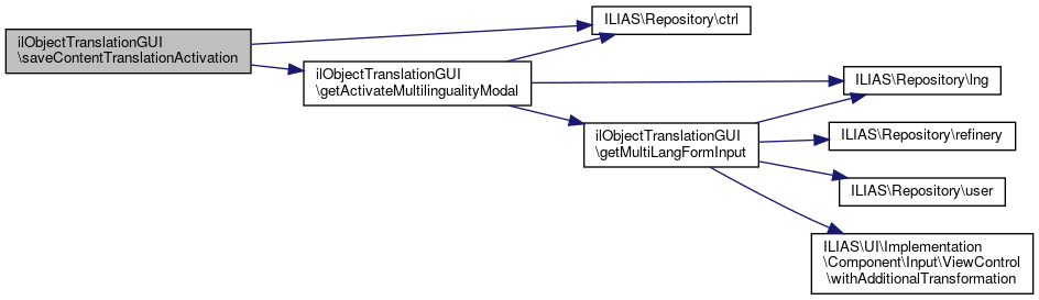 Here is the caller graph for this function:| ilObjectTranslationGUI::saveContentTranslationActivation | ( | ) |