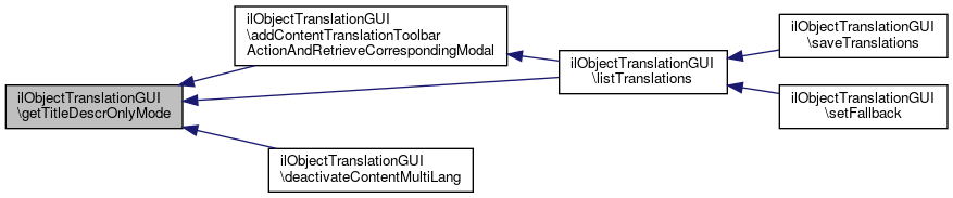 Here is the caller graph for this function:| ilObjectTranslationGUI::getTitleDescrOnlyMode | ( | ) |