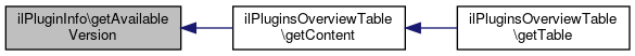 Here is the caller graph for this function:| ilPluginInfo::getCurrentVersion | ( | ) |