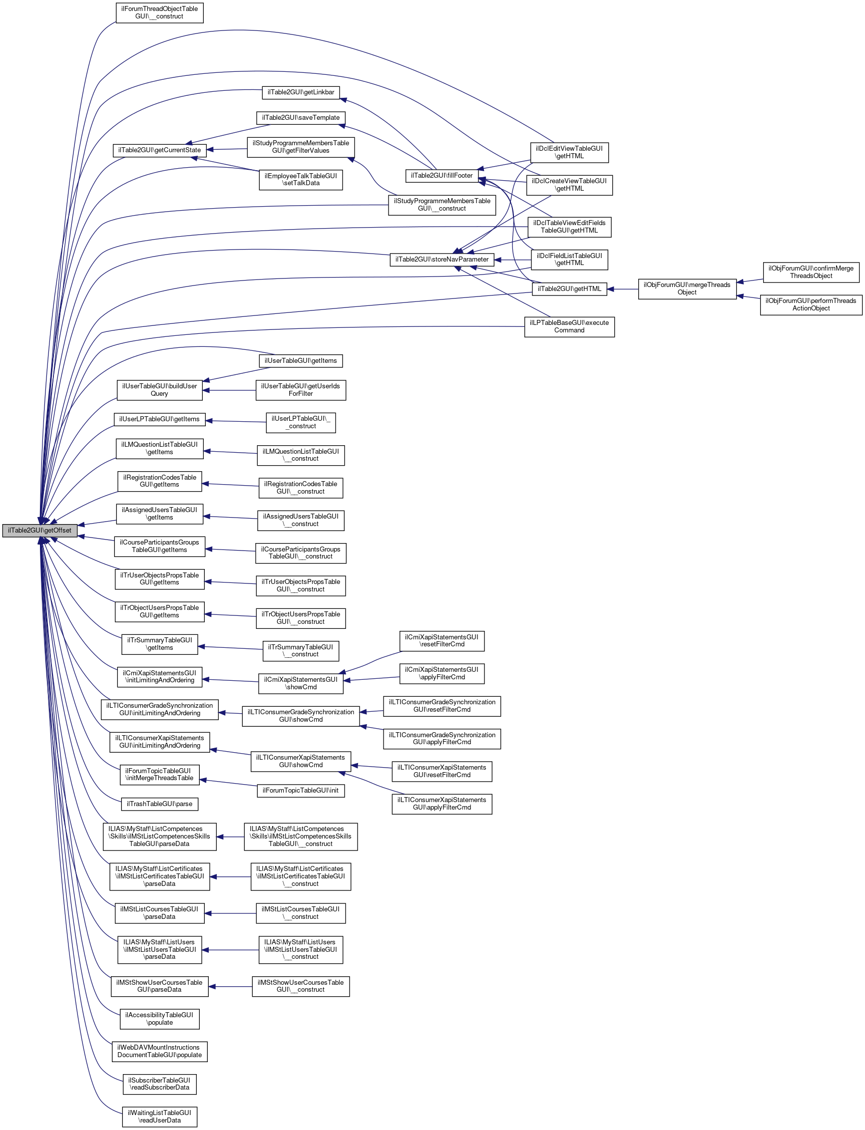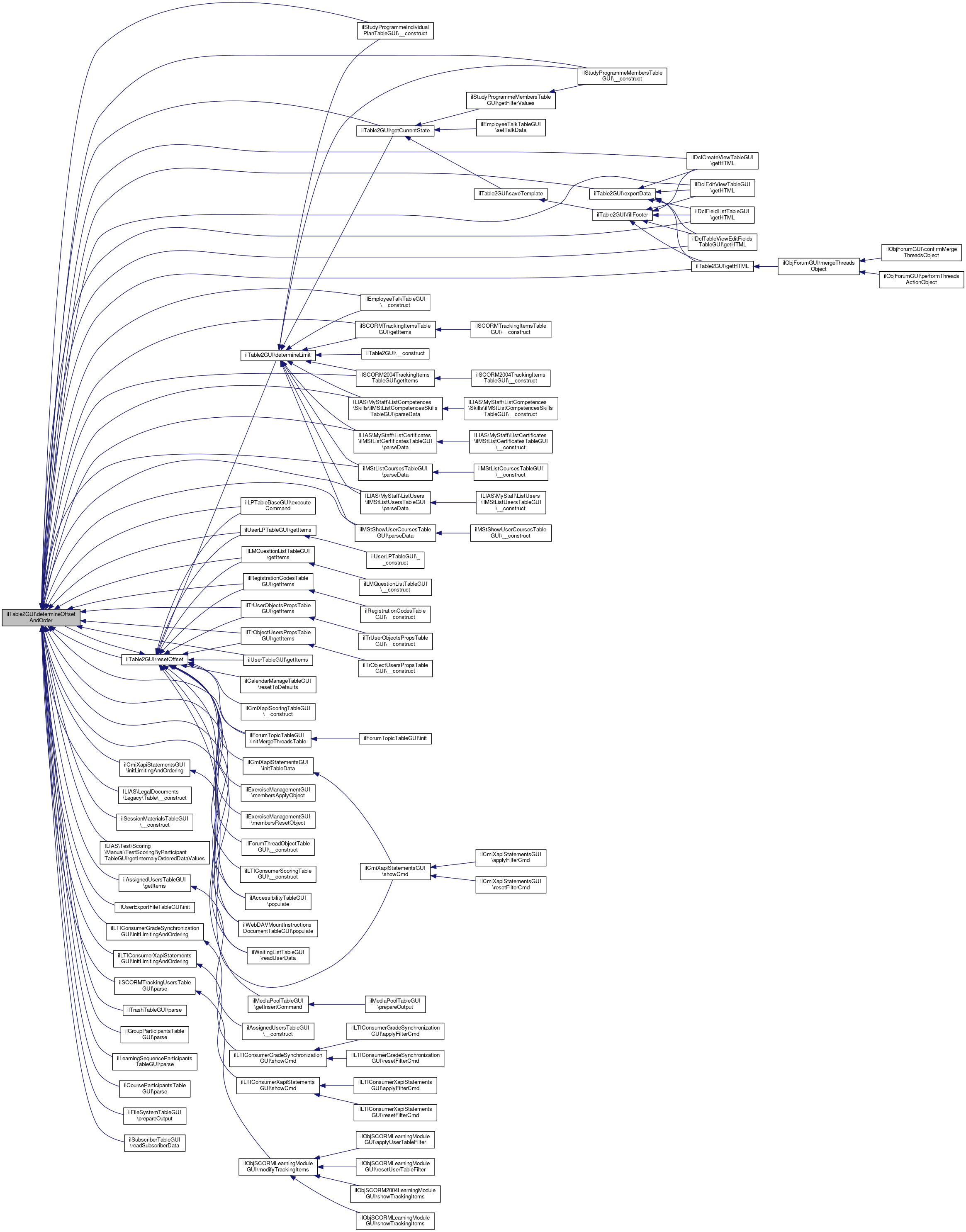 Referenced by ilStudyProgrammeAutoMembershipsTableGUI\__construct(), ilForumThreadObjectTableGUI\__construct(), ilForumTopicTableGUI\__construct(), ILIAS\LegalDocuments\Legacy\Table\__construct(), ilExerciseSubmissionTableGUI\__construct(), ilUserTableGUI\addFilterItemByUdfType(), ilDclRecordListTableGUI\buildData(), ilSCTreeDuplicatesTableGUI\fillRow(), ilSCGroupTableGUI\fillRow(), ilSCTaskTableGUI\fillRow(), ilUserRoleStartingPointTableGUI\fillRow(), ilOrgUnitPermissionTableGUI\fillSelectAll(), ilWebDAVMountInstructionsDocumentTableGUI\formatTitle(), ilMDCopyrightTableGUI\getActionsForEntry(), ilQuestionBrowserTableGUI\getCommentsHtml(), ilModulesTableGUI\getComponents(), ilLPTableBaseGUI\getCurrentFilter(), ilLPObjectStatisticsTypesTableGUI\getGraph(), getId(), ilTestSkillLevelThresholdsTableGUI\getInputElements(), ilContributorTableGUI\getItems(), ilExAssignmentTeamTableGUI\getItems(), ilTrSummaryTableGUI\getItemsPercentages(), ilTrSummaryTableGUI\getItemsPercentagesStatus(), ilSurveySkillAssignmentTableGUI\getQuestions(), ilTrMatrixTableGUI\getSelectableColumns(), ilExerciseSubmissionTableGUI\getSelectableColumns(), ilSurveyQuestionTableGUI\importData(), ilBookingReservationsTableGUI\initFilter(), ilStudyProgrammeMembersTableGUI\initFilter(), ilUserTableGUI\initFilter(), ilObjectOwnershipManagementTableGUI\initItems(), SurveyConstraintsTableGUI\initItems(), ilCalendarSharedUserListTableGUI\parse(), ilCalendarSharedRoleListTableGUI\parse(), ilExerciseSubmissionTableGUI\parseColumns(), ilAdvancedMDRecordExportFilesTableGUI\parseFiles(), ilForumNotificationTableGUI\populateWithModal(), and setContext().