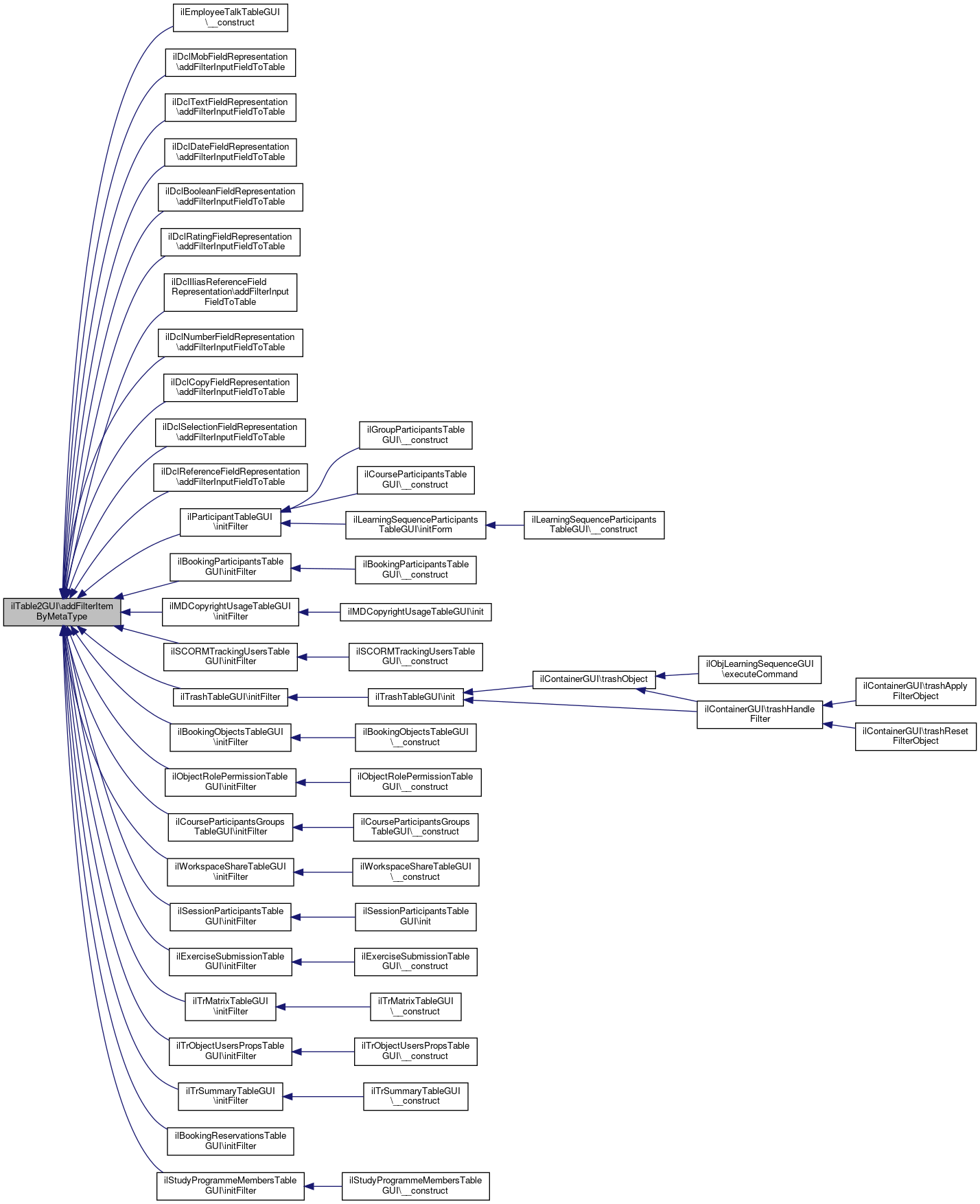 Referenced by ilDclMobFieldRepresentation\addFilterInputFieldToTable(), ilDclTextFieldRepresentation\addFilterInputFieldToTable(), ilDclIliasReferenceFieldRepresentation\addFilterInputFieldToTable(), ilDclCopyFieldRepresentation\addFilterInputFieldToTable(), ilPRGAssignmentFilter\getCleanedValues(), ilPRGAssignmentFilter\getItemConfig(), ilParticipantTableGUI\initFilter(), ilBookingParticipantsTableGUI\initFilter(), ilMDCopyrightUsageTableGUI\initFilter(), ilSCORMTrackingUsersTableGUI\initFilter(), ilTrashTableGUI\initFilter(), ilBookingObjectsTableGUI\initFilter(), ilCourseParticipantsGroupsTableGUI\initFilter(), ilSessionParticipantsTableGUI\initFilter(), ilTrMatrixTableGUI\initFilter(), ilTrObjectUsersPropsTableGUI\initFilter(), ilTrSummaryTableGUI\initFilter(), and ilBookingReservationsTableGUI\initFilter().