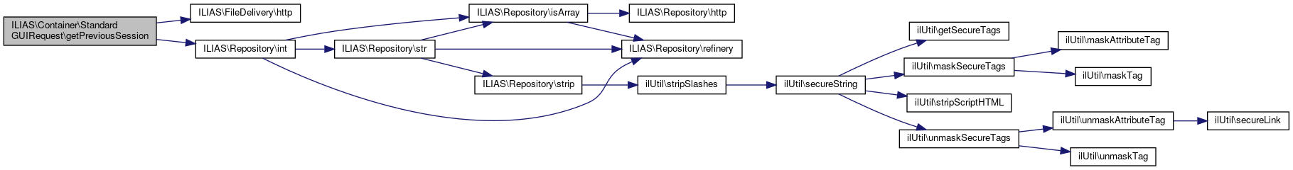 Here is the call graph for this function:| ILIAS\Container\StandardGUIRequest::getPreviousSession | ( | ) |