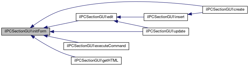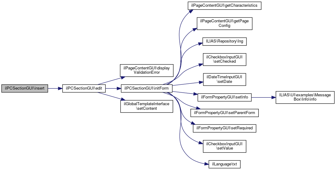Here is the call graph for this function:| ilPCSectionGUI::initForm | ( | bool | $a_insert = false | ) |