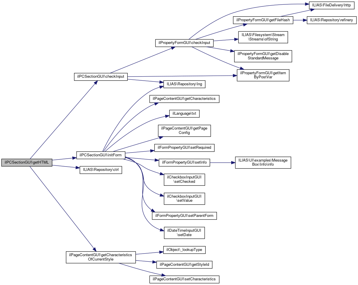 Here is the call graph for this function:| ilPCSectionGUI::getHTML | ( | array | $params | ) |