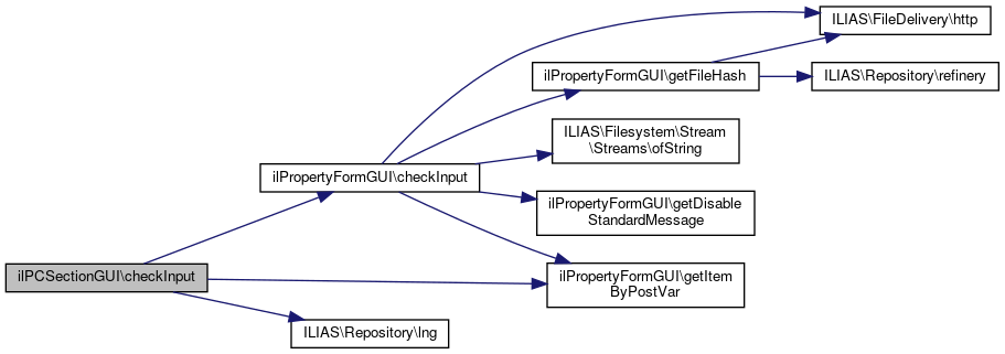 Here is the caller graph for this function:| ilPCSectionGUI::checkInput | ( | ilPropertyFormGUI | $form | ) |