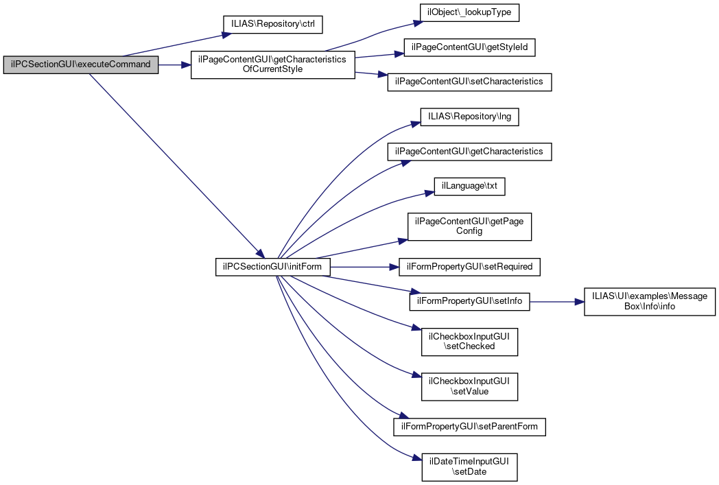 Here is the caller graph for this function:| ilPCSectionGUI::executeCommand | ( | ) |
