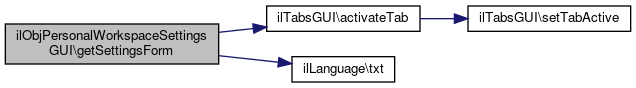 Here is the call graph for this function:| ilObjPersonalWorkspaceSettingsGUI::getSettingsForm | ( | ) |