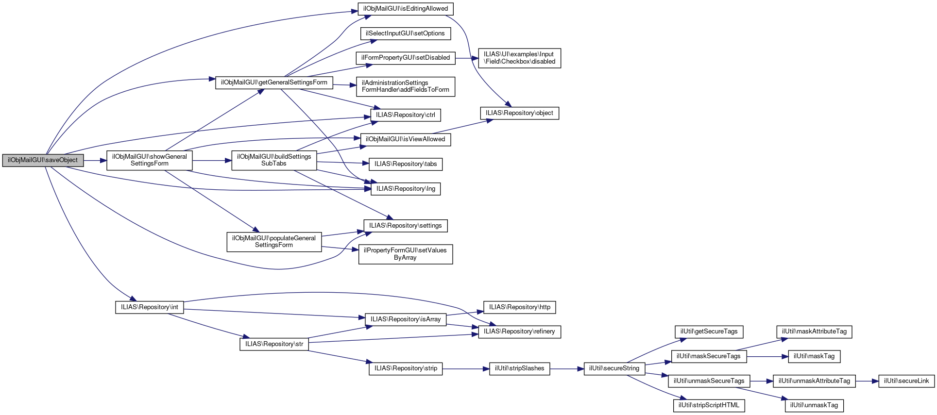Here is the call graph for this function:| ilObjMailGUI::saveObject | ( | ) |