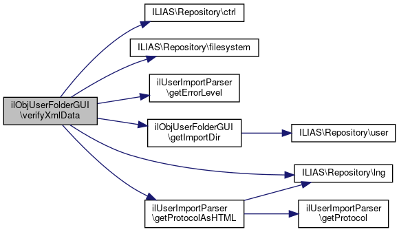 Here is the call graph for this function:| ilObjUserFolderGUI::verifyXmlData | ( | ilUserImportParser | $import_parser | ) |