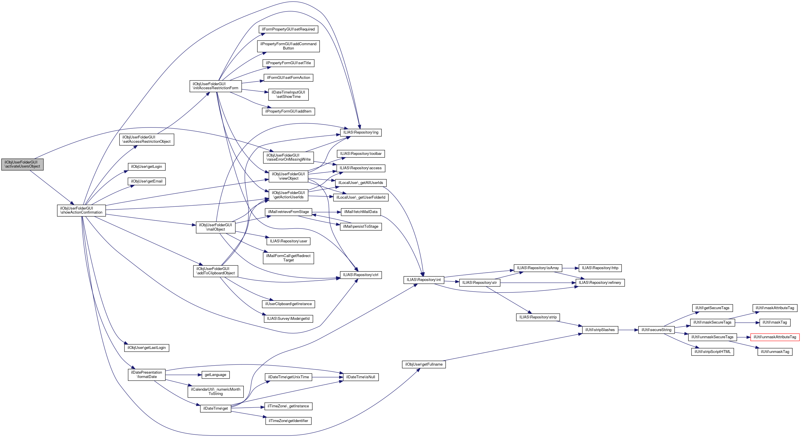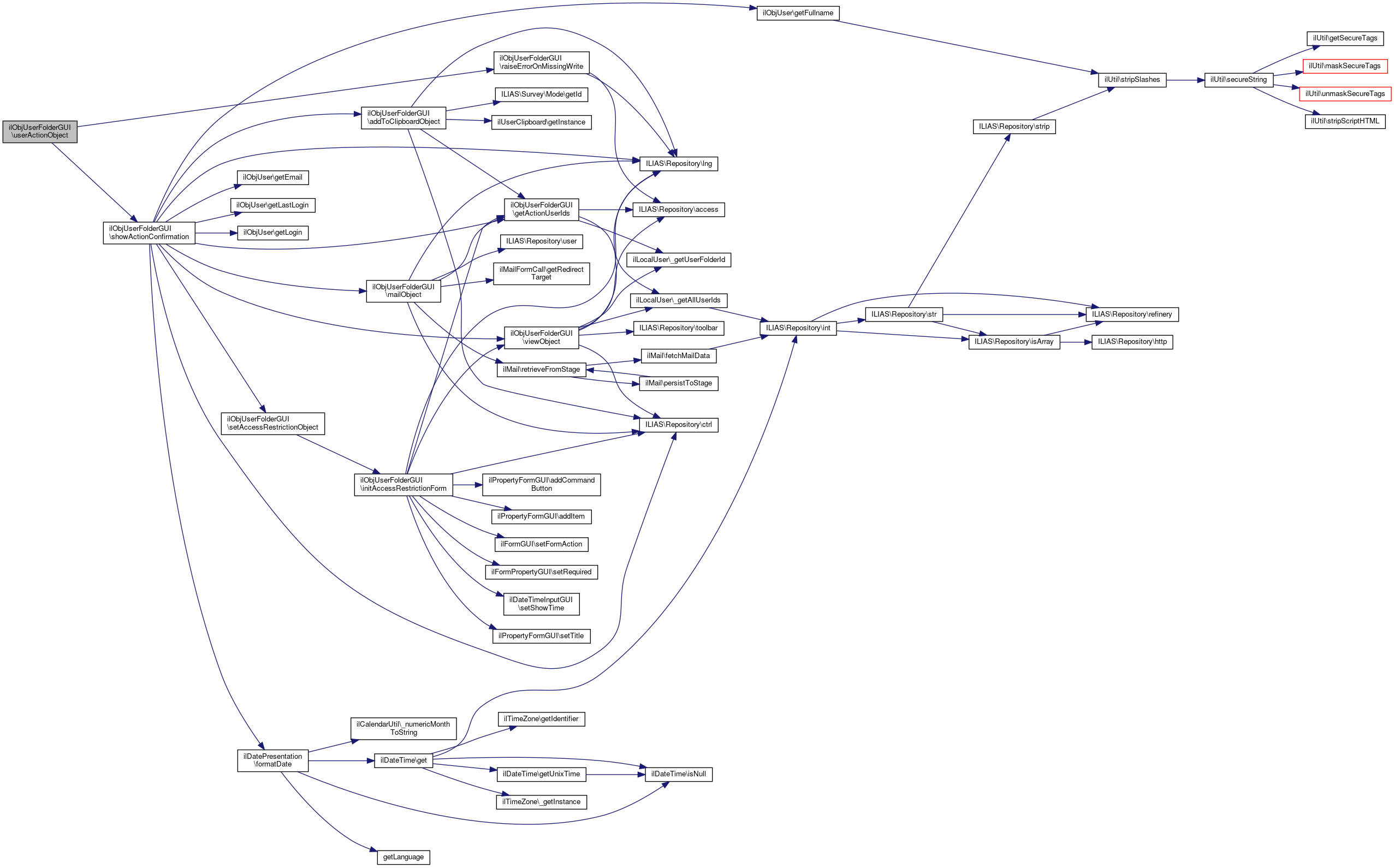 Here is the call graph for this function:| ilObjUserFolderGUI::userActionObject | ( | ) |