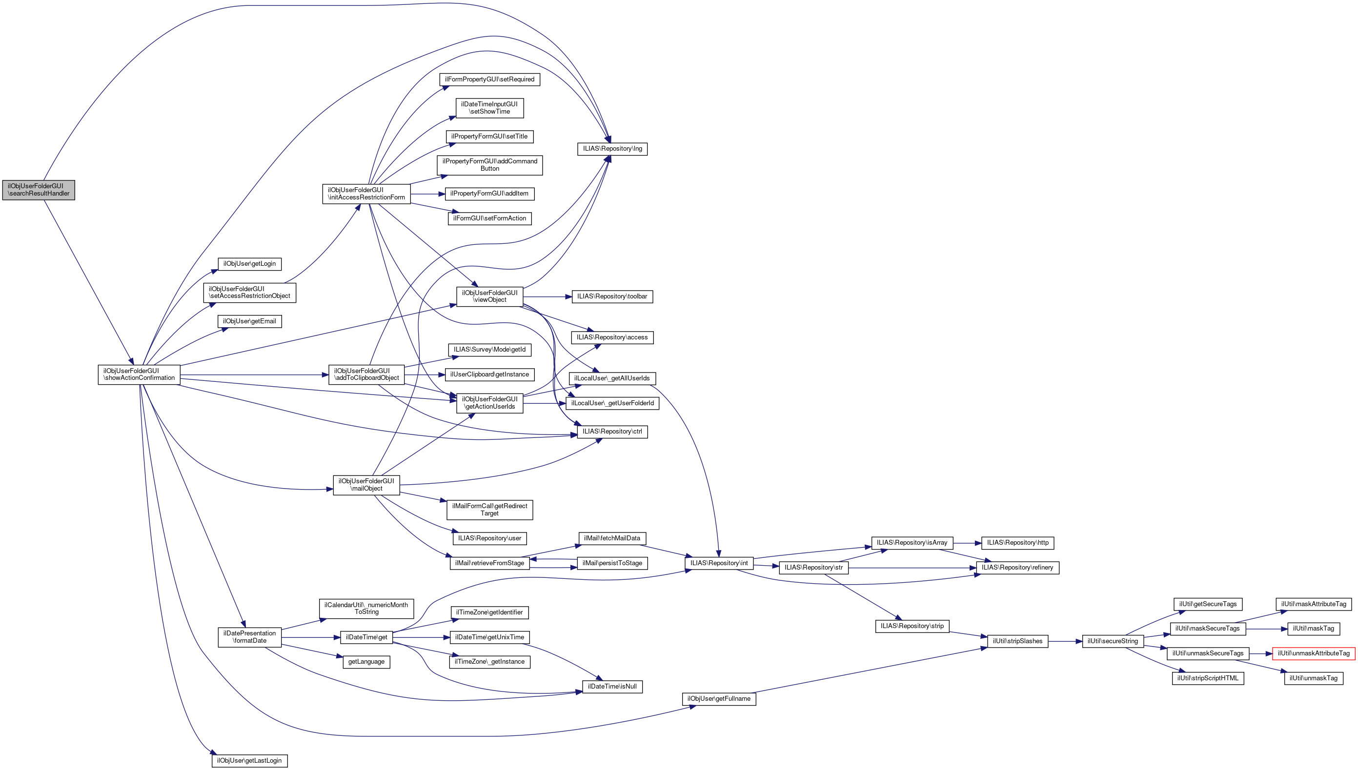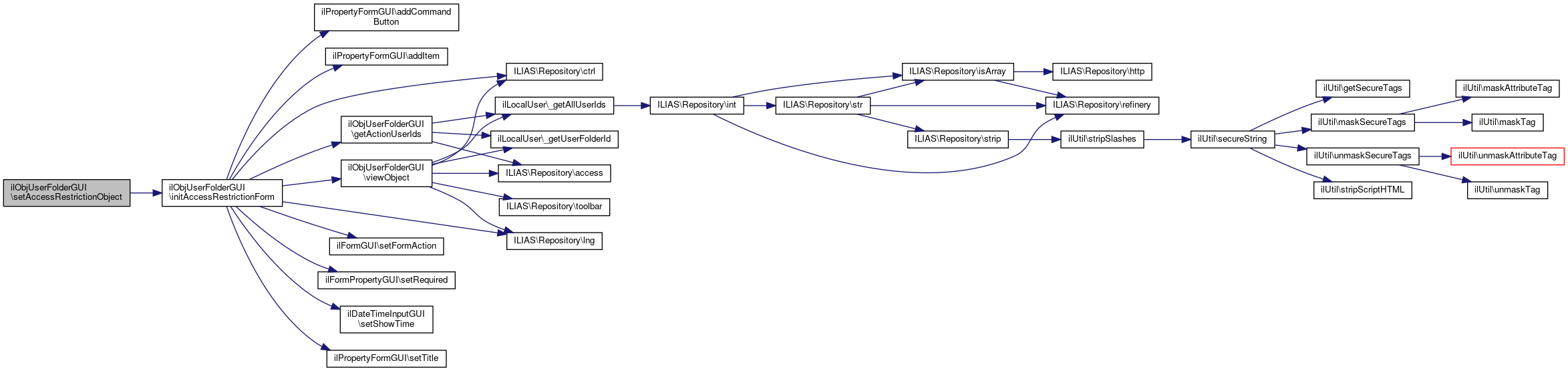 Here is the call graph for this function:| ilObjUserFolderGUI::restrictAccessObject | ( | ) |