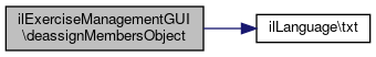 Here is the call graph for this function:| ilExerciseManagementGUI::deassignMembersObject | ( | ) |