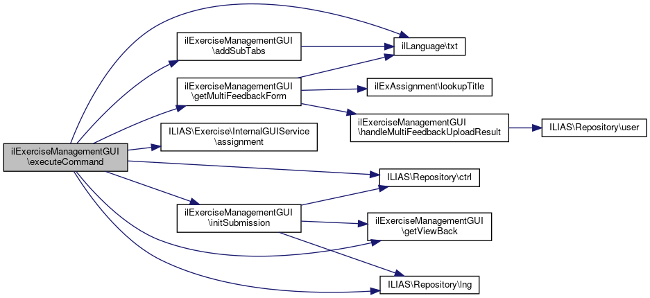 ilExerciseManagementGUI: ilRepositorySearchGUI ilExerciseManagementGUI: ilExSubmissionTeamGUI, ilExSubmissionFileGUI ilExerciseManagementGUI: ilExSubmissionTextGUI, ilExPeerReviewGUI ilExerciseManagementGUI: ilParticipantsPerAssignmentTableGUI ilExerciseManagementGUI: ilResourceCollectionGUI, ilRepoStandardUploadHandlerGUI ilExerciseManagementGUI: ilExerciseSubmissionFeedbackGUI