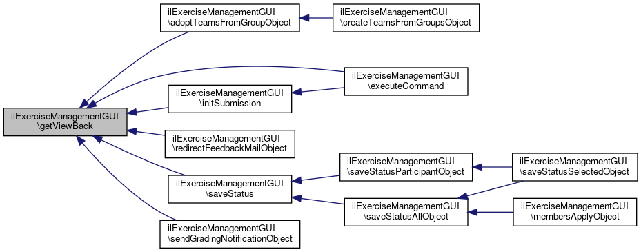 Here is the caller graph for this function:| ilExerciseManagementGUI::backToCurrentOverview | ( | ) |