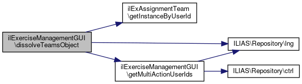 Here is the call graph for this function:| ilExerciseManagementGUI::dissolveTeamsObject | ( | ) |