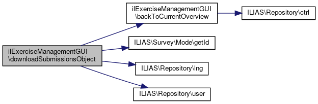 Here is the call graph for this function:| ilExerciseManagementGUI::downloadSubmissionsObject | ( | ?array | $selected_participants = null | ) |