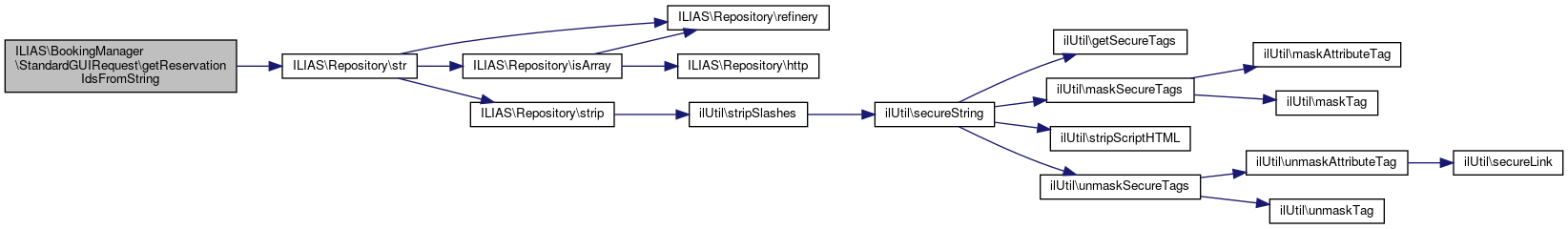 Here is the call graph for this function:| ILIAS\BookingManager\StandardGUIRequest::getReservationIdsFromString | ( | ) |