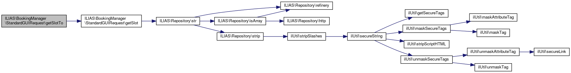 Here is the call graph for this function:| ILIAS\BookingManager\StandardGUIRequest::getSlotTo | ( | ) |