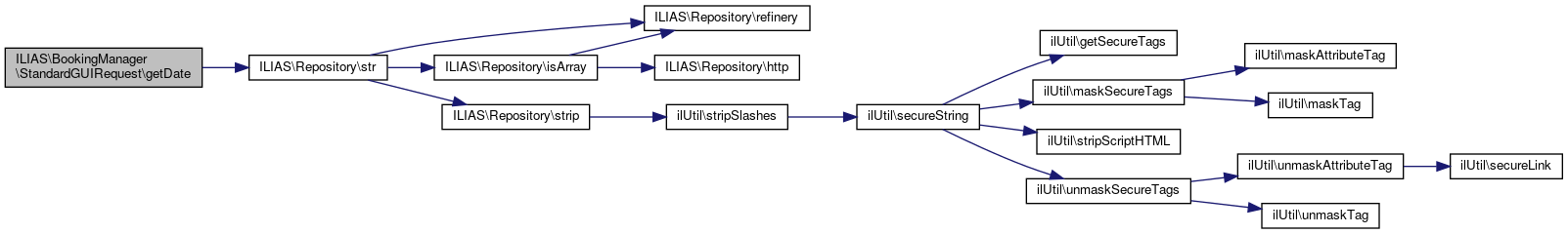 Here is the call graph for this function:| ILIAS\BookingManager\StandardGUIRequest::getDate | ( | ) |