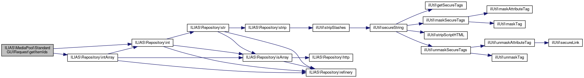 Here is the call graph for this function:| ILIAS\MediaPool\StandardGUIRequest::getItemIds | ( | ) |