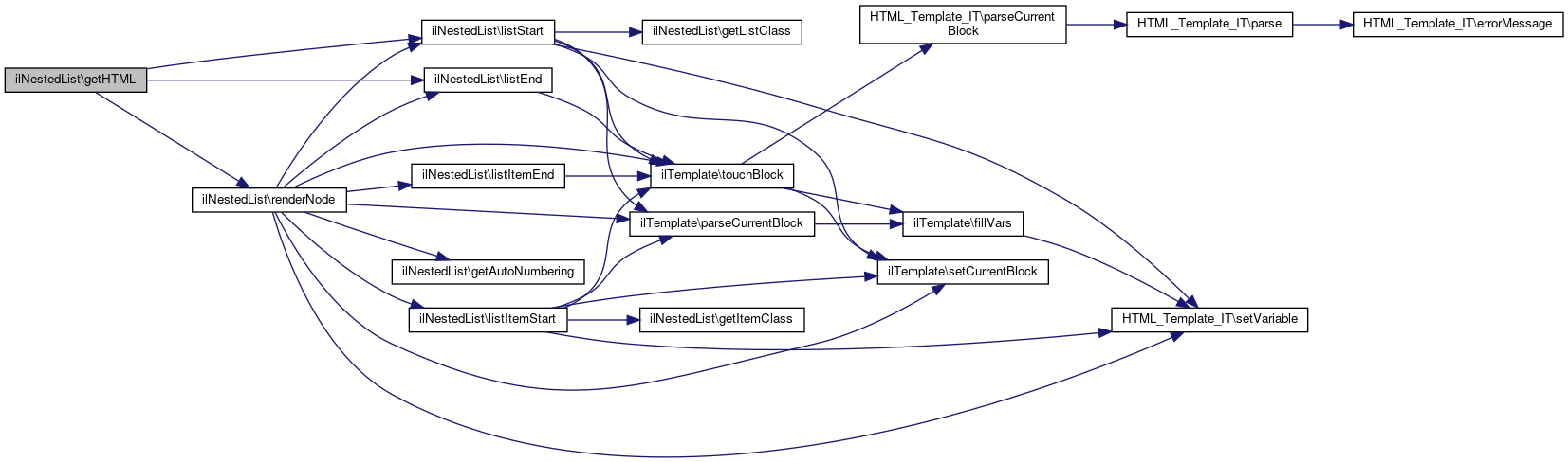 Here is the caller graph for this function:| ilNestedList::getHTML | ( | ) |