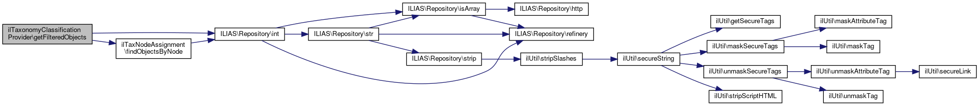 Here is the call graph for this function:| ilTaxonomyClassificationProvider::getFilteredObjects | ( | ) |
