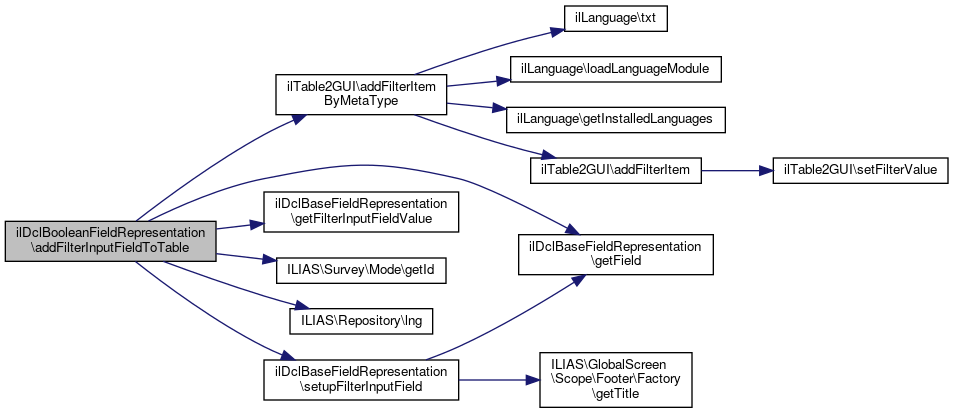References ilTable2GUI\addFilterItemByMetaType(), ilTable2GUI\FILTER_SELECT, ilDclBaseFieldRepresentation\getField(), ilDclBaseFieldRepresentation\getFilterInputFieldValue(), ILIAS\Survey\Mode\getId(), ILIAS\Repository\lng(), and ilDclBaseFieldRepresentation\setupFilterInputField().