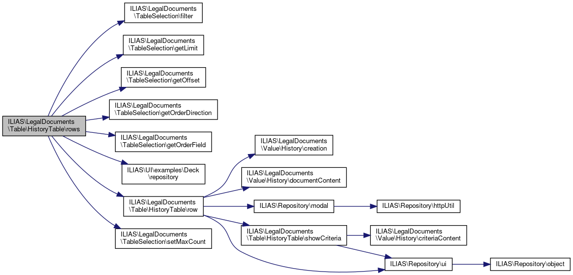 References ILIAS\LegalDocuments\TableSelection\filter(), ILIAS\LegalDocuments\TableSelection\getLimit(), ILIAS\LegalDocuments\TableSelection\getOffset(), ILIAS\LegalDocuments\TableSelection\getOrderDirection(), ILIAS\LegalDocuments\TableSelection\getOrderField(), ILIAS\UI\examples\Deck\repository(), ILIAS\LegalDocuments\Table\HistoryTable\row(), and ILIAS\LegalDocuments\TableSelection\setMaxCount().